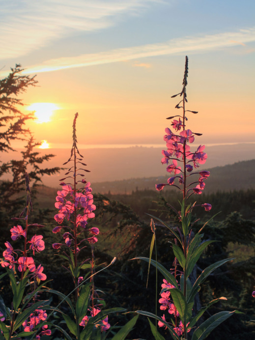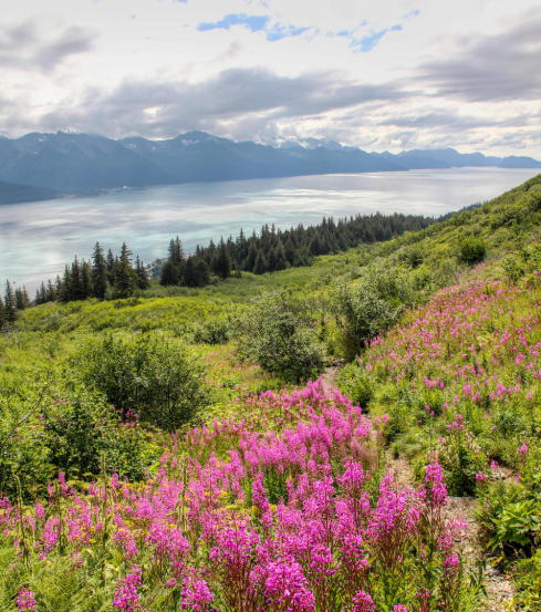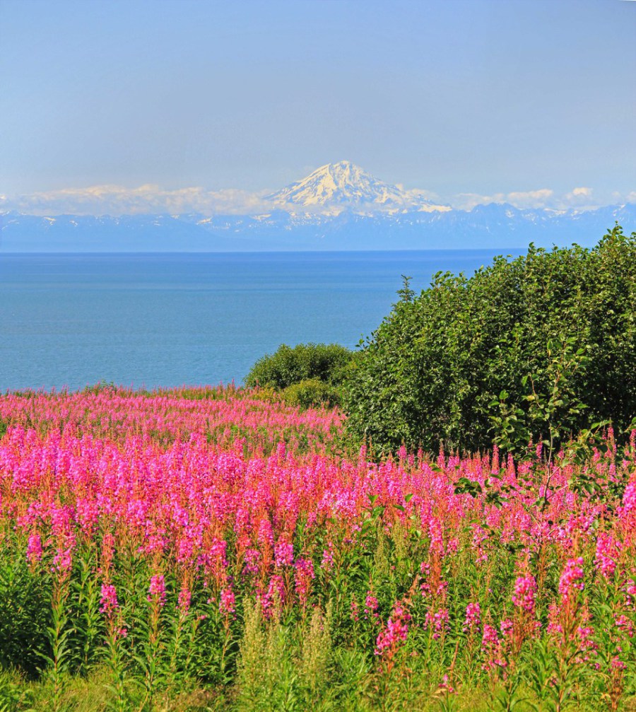 Fireweed view with Cook Inlet & Redoubt Volcano